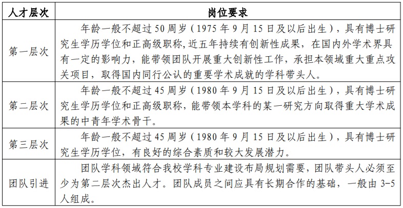 二、引进人才层次及待遇