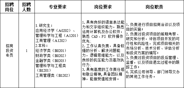 (三)具有2年或以上产业招商、科创招商、行业协会投融资等相关工作经验者优先。