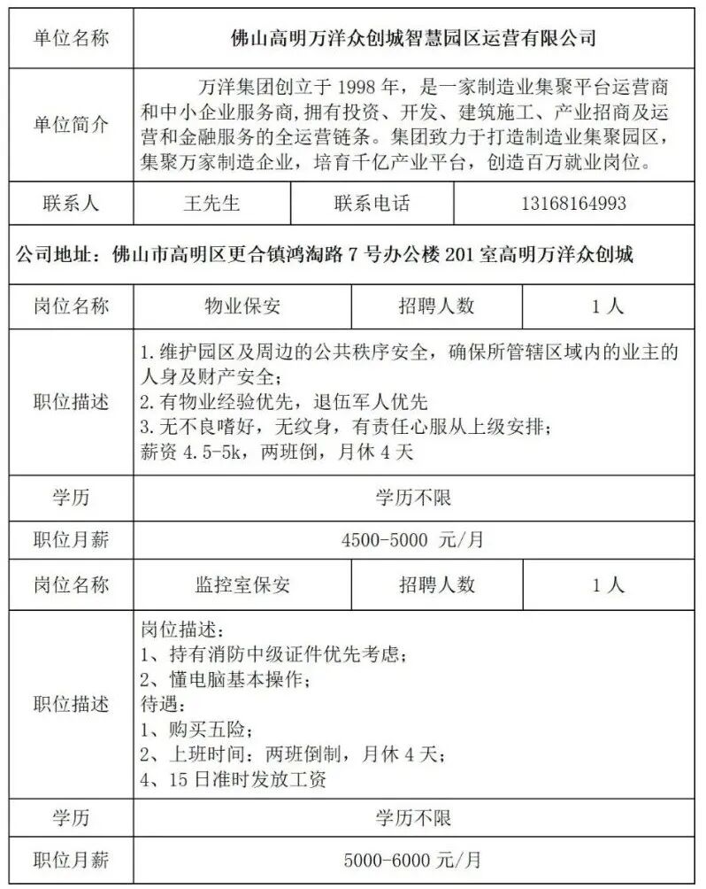- 佛山高明万洋众创城智慧园区运营有限公司招聘