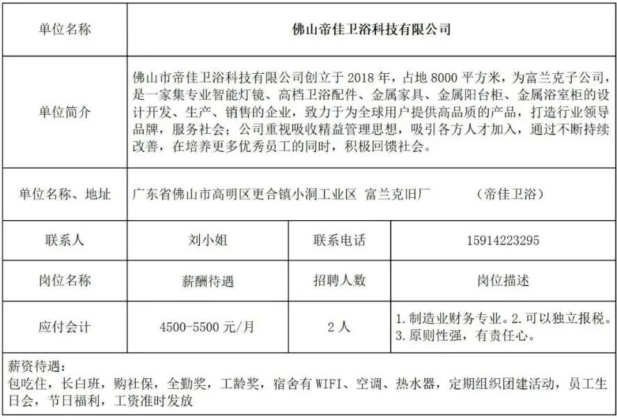 - 佛山帝佳卫浴科技有限公司招聘