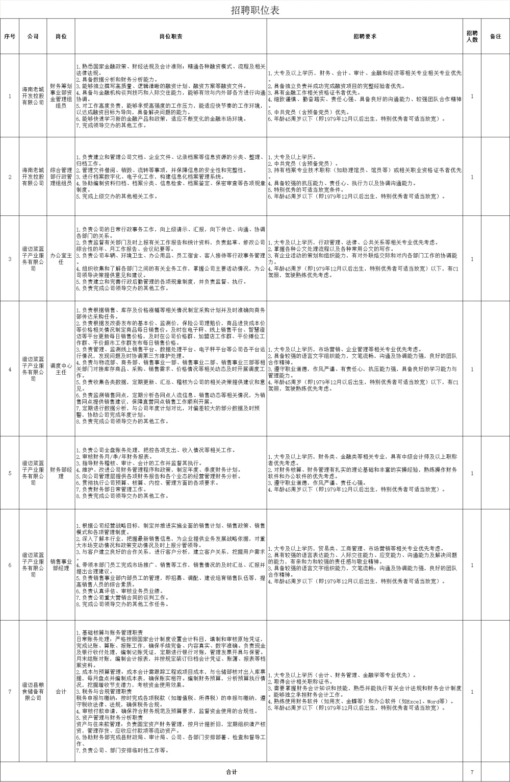 公开招聘县属国有企业工作人员7名,具体详见附件。