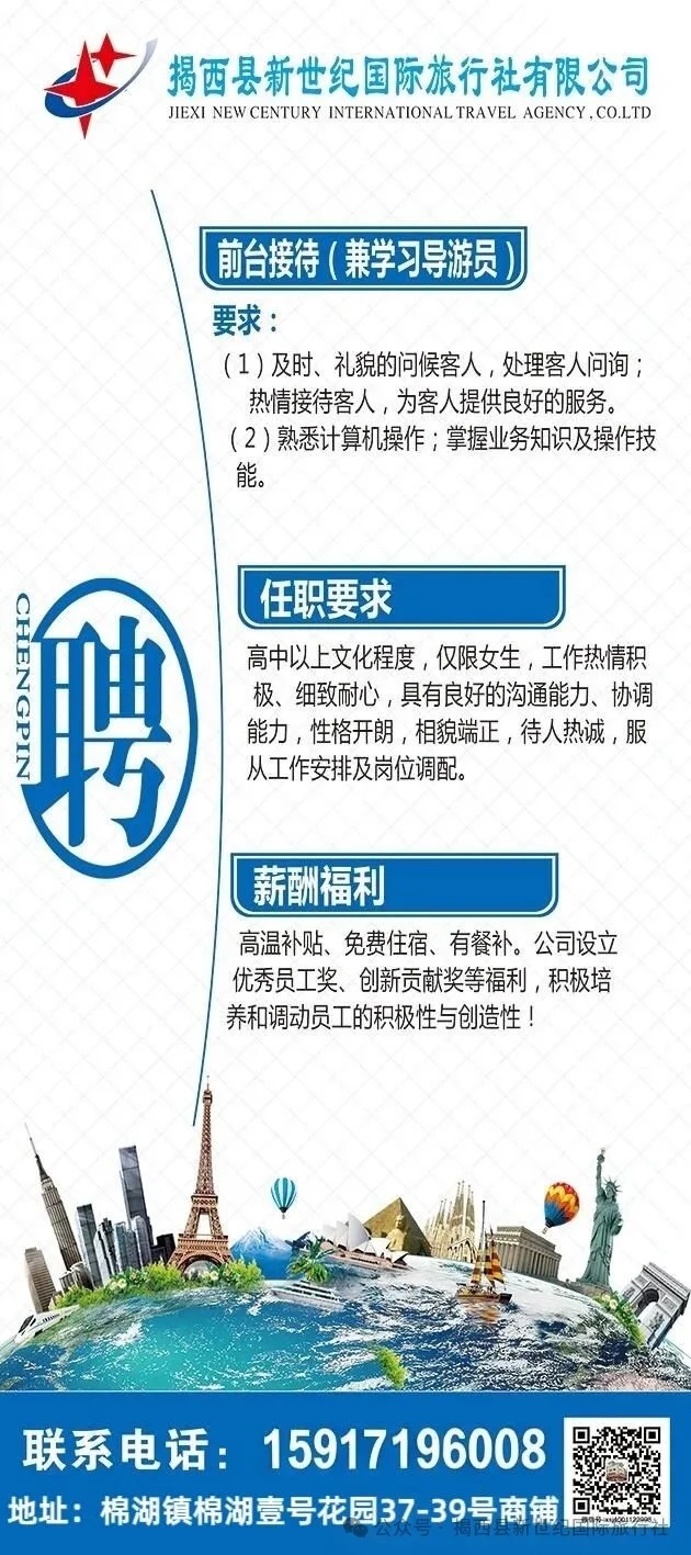 面试地址:广东省揭西县棉湖镇湖西村大龙秋A段棉湖壹号花园39号(新世纪国旅)