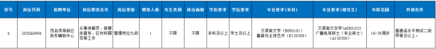 2.广东茂名滨海新区2025年公开招聘事业单位工作人员岗位表.xlsx