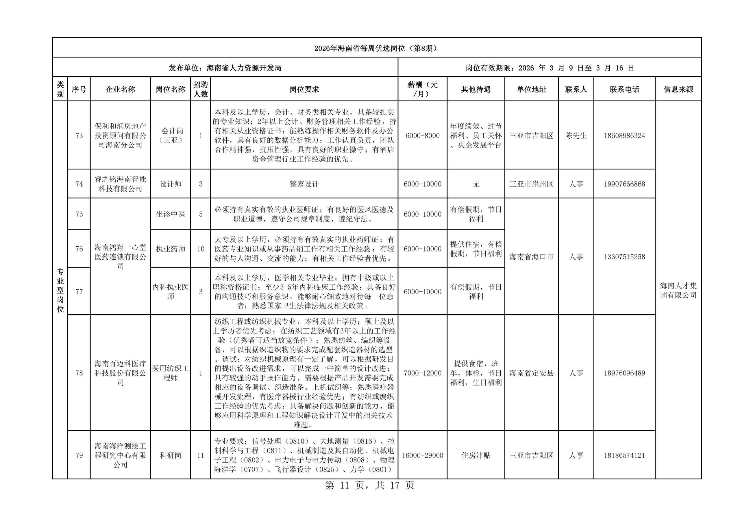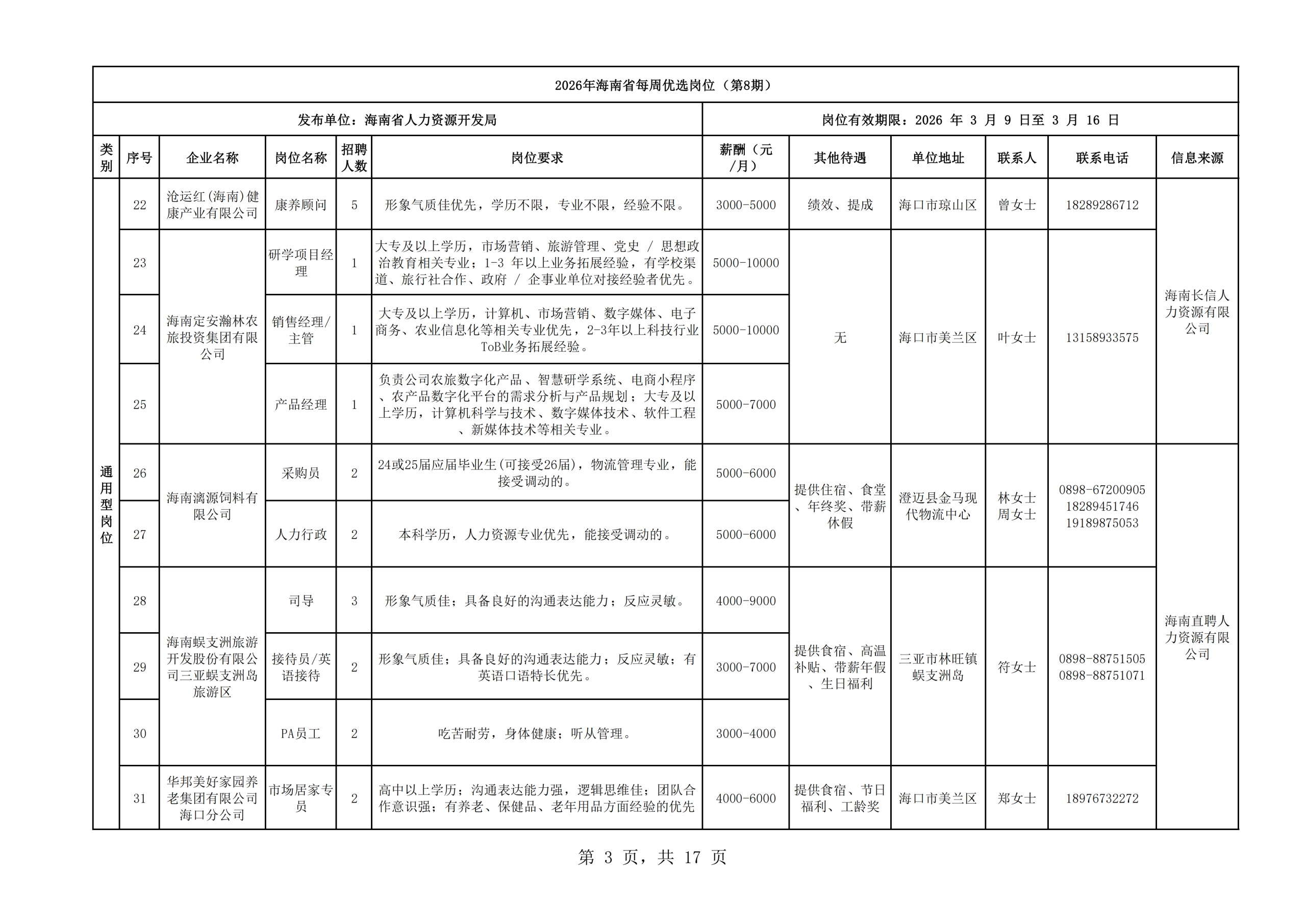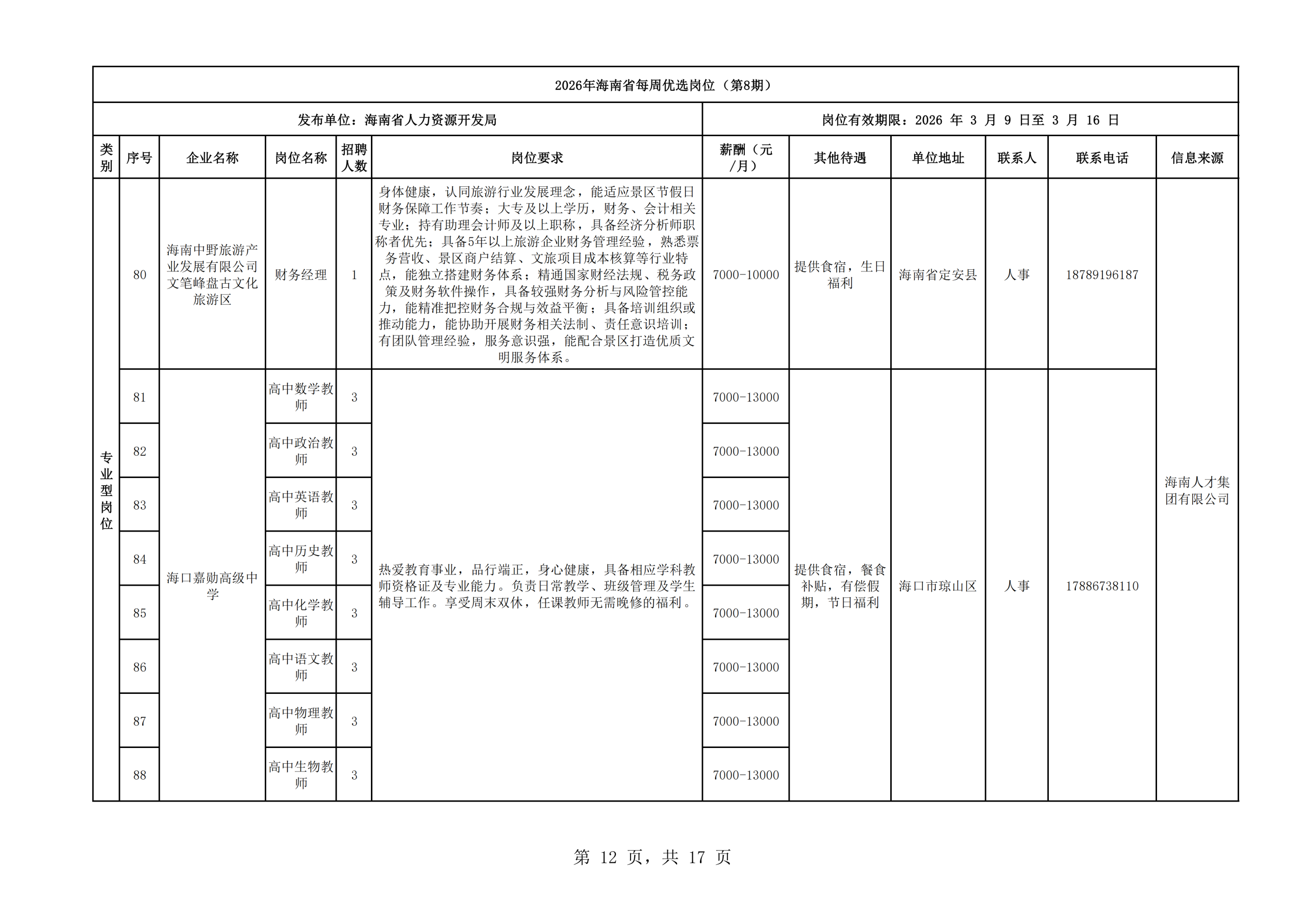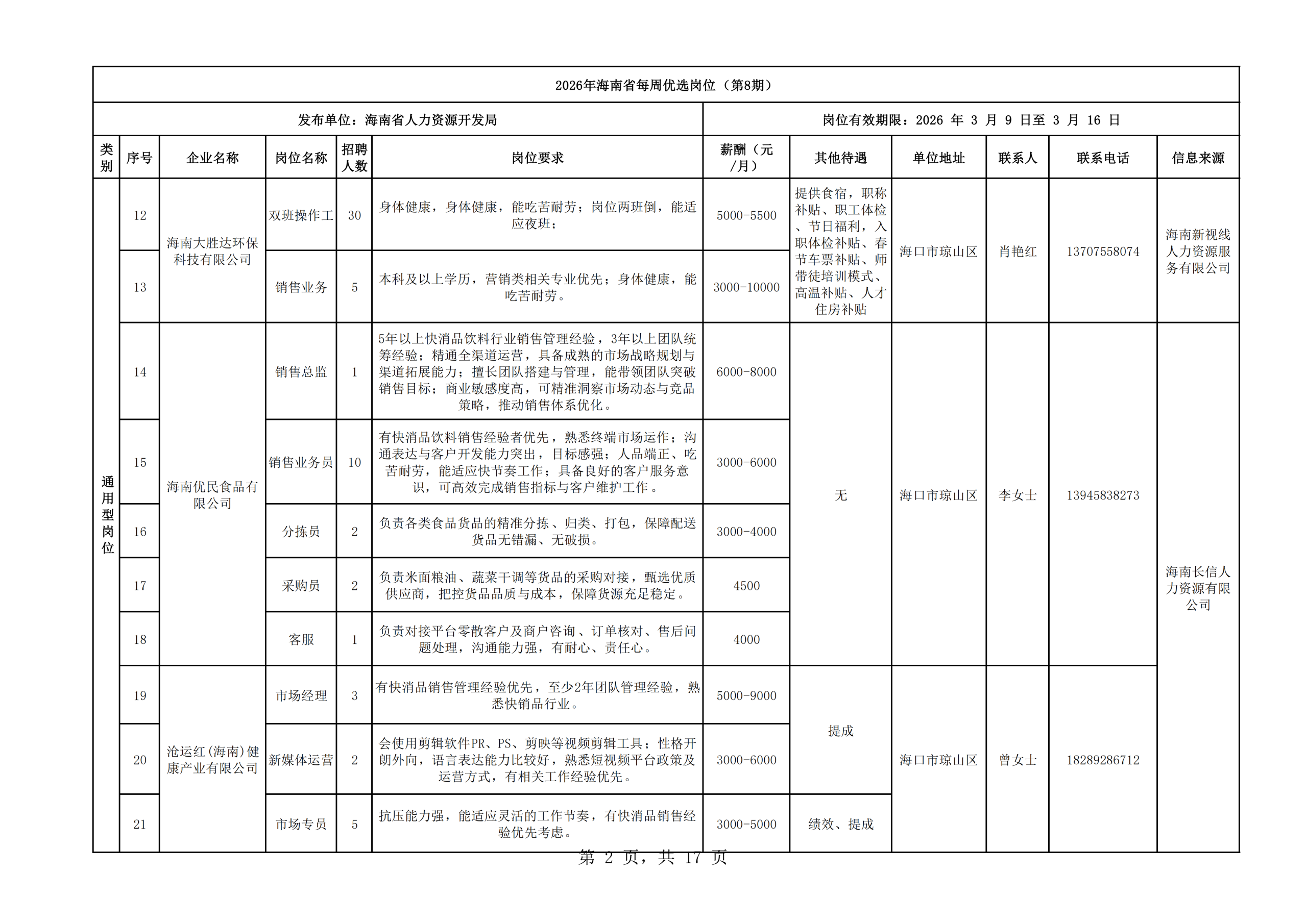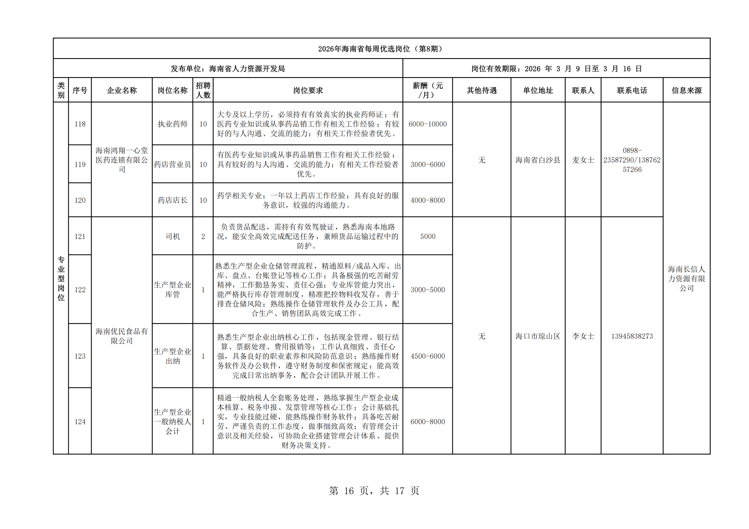 2026年海南省每周优选岗位(第8期)