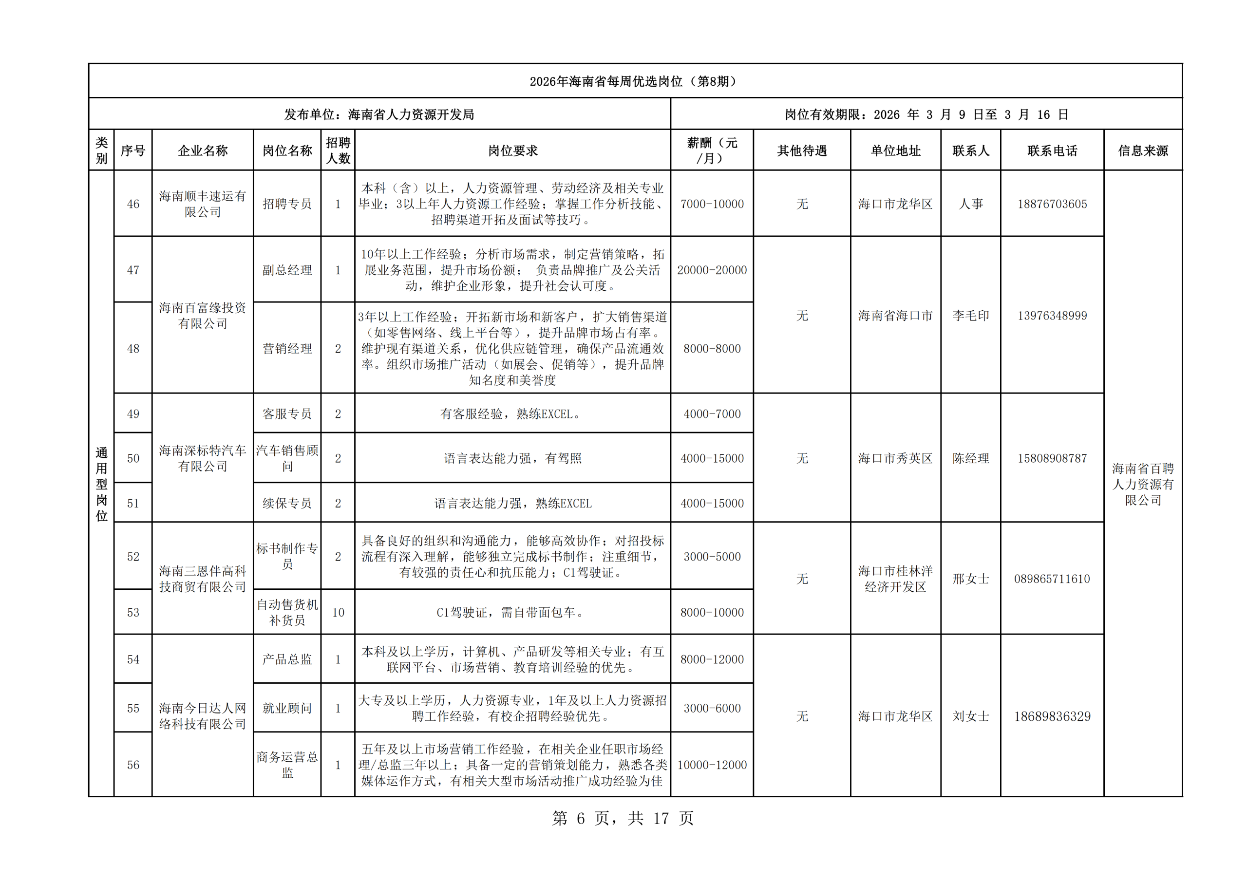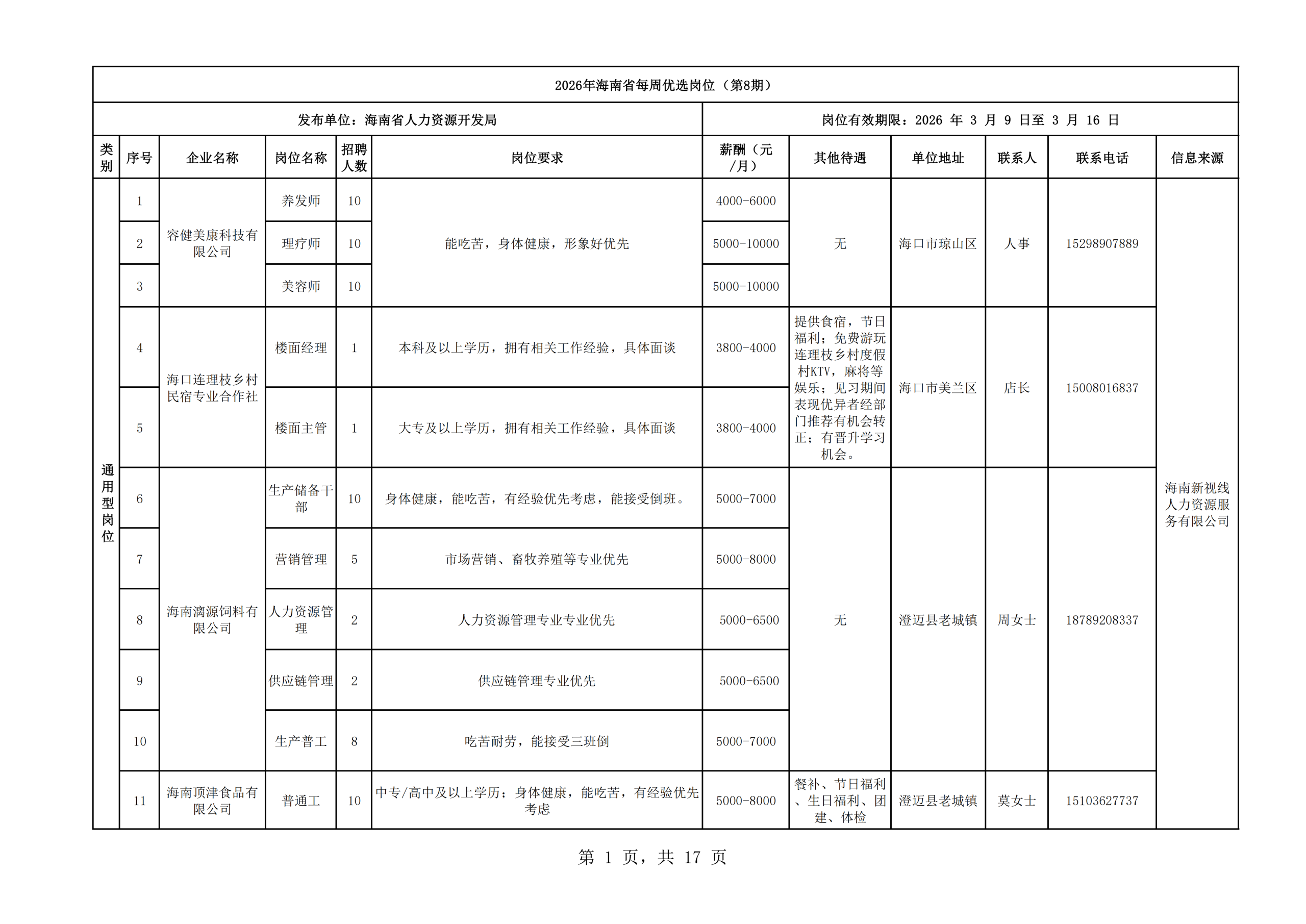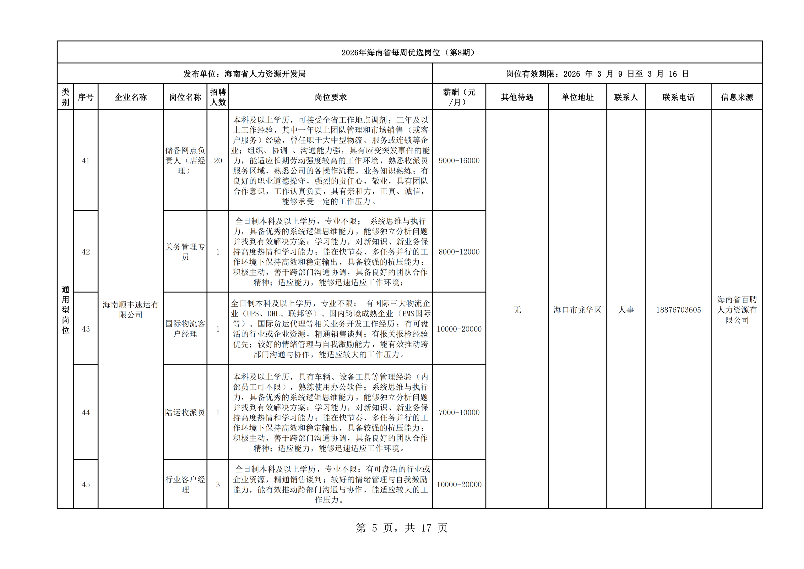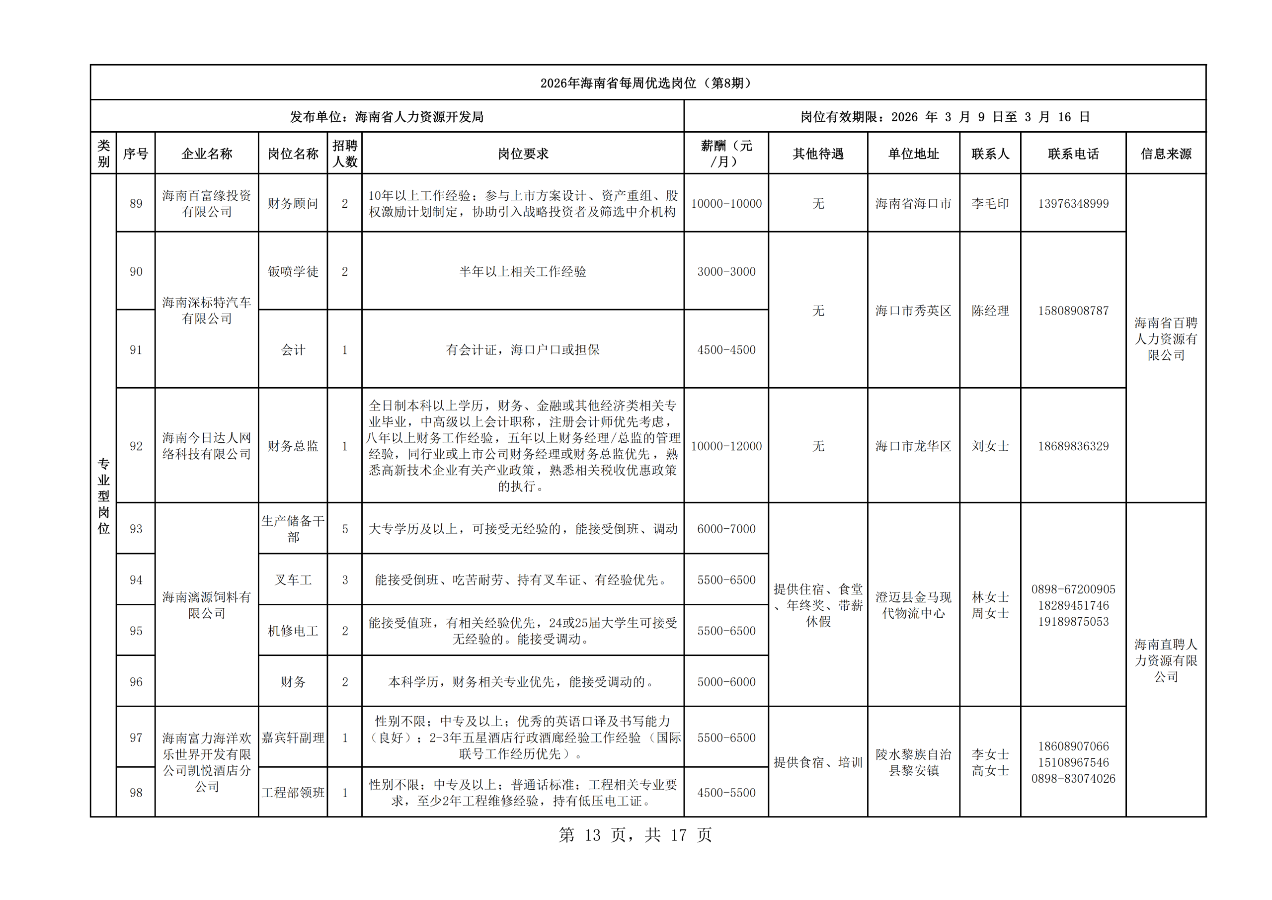 2026年海南省每周优选岗位(第8期)