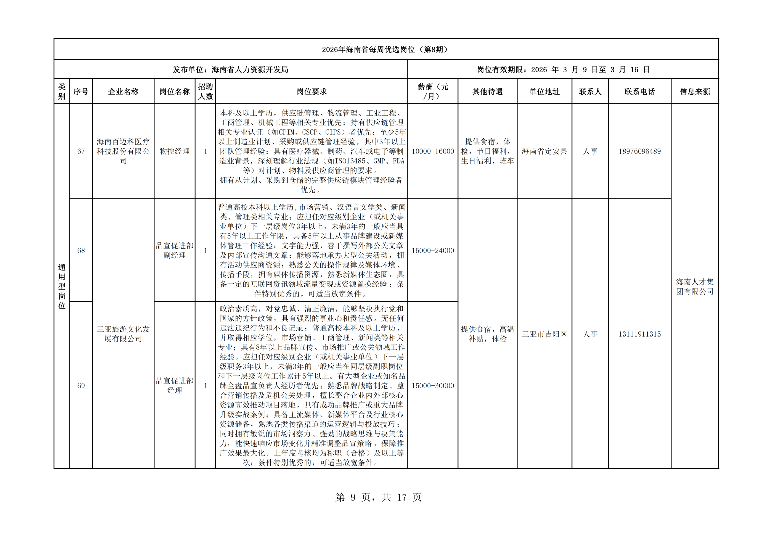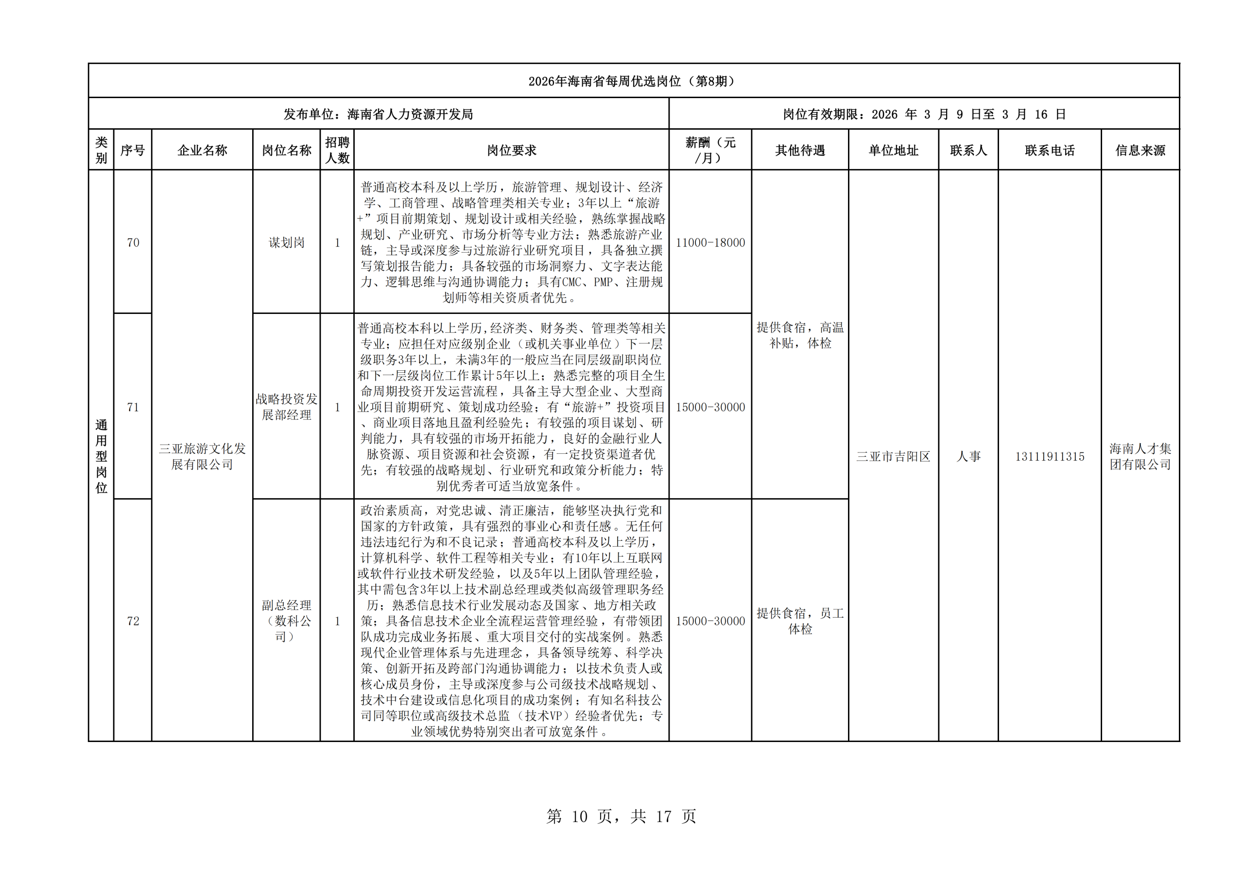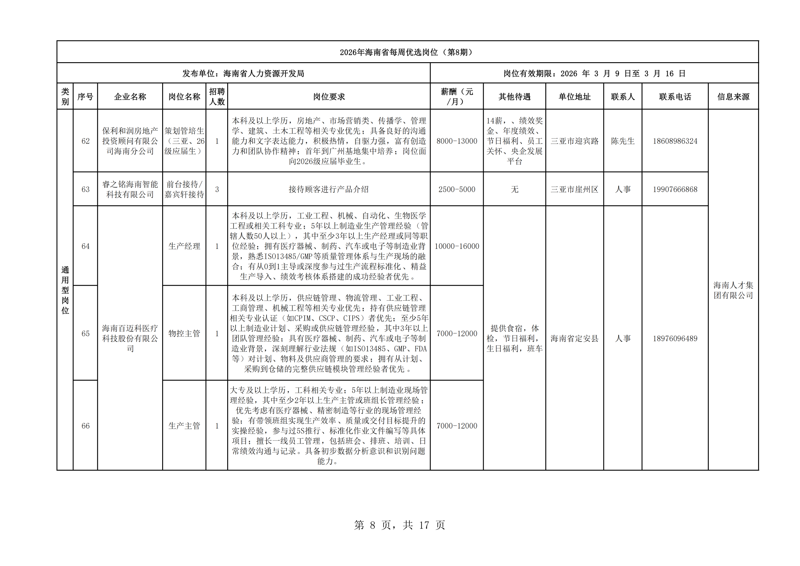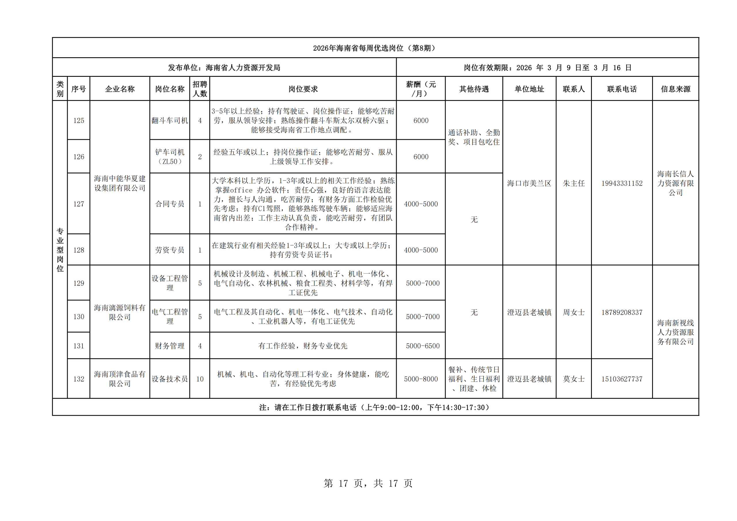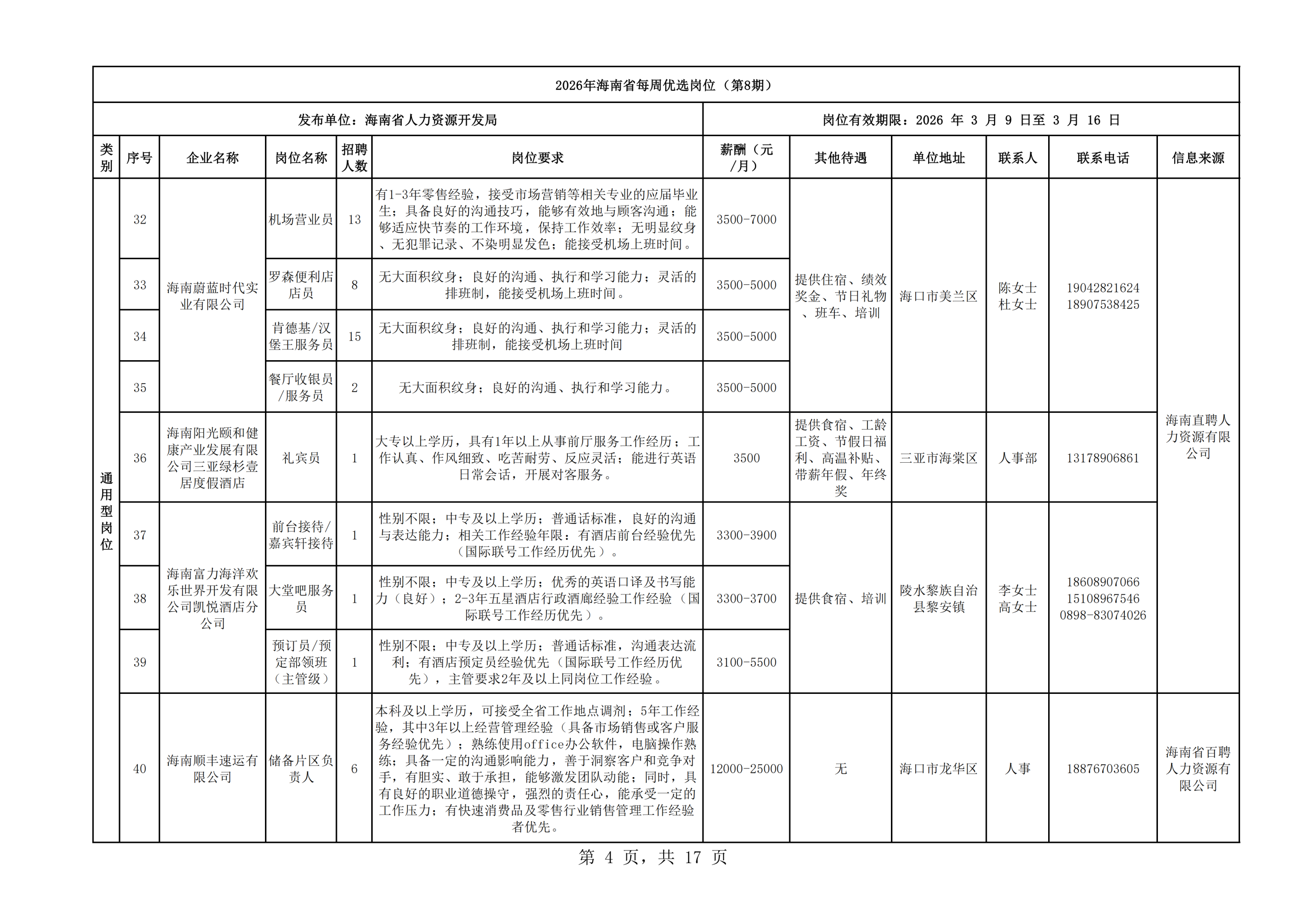 2026年海南省每周优选岗位(第8期)