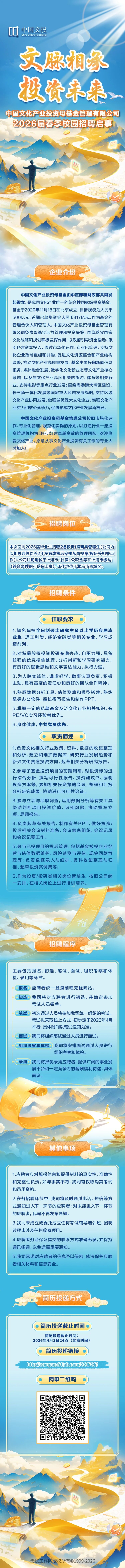 中国文化产业投资母基金管理有限公司2026届春季校园招聘