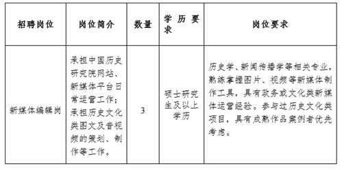 原标题:中国历史研究院2025年非事业编制人员招聘公告
