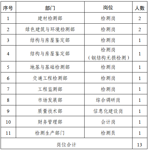 详见《中山市建设工程质量检测中心有限公司2025年招聘岗位信息表》(附件1)。