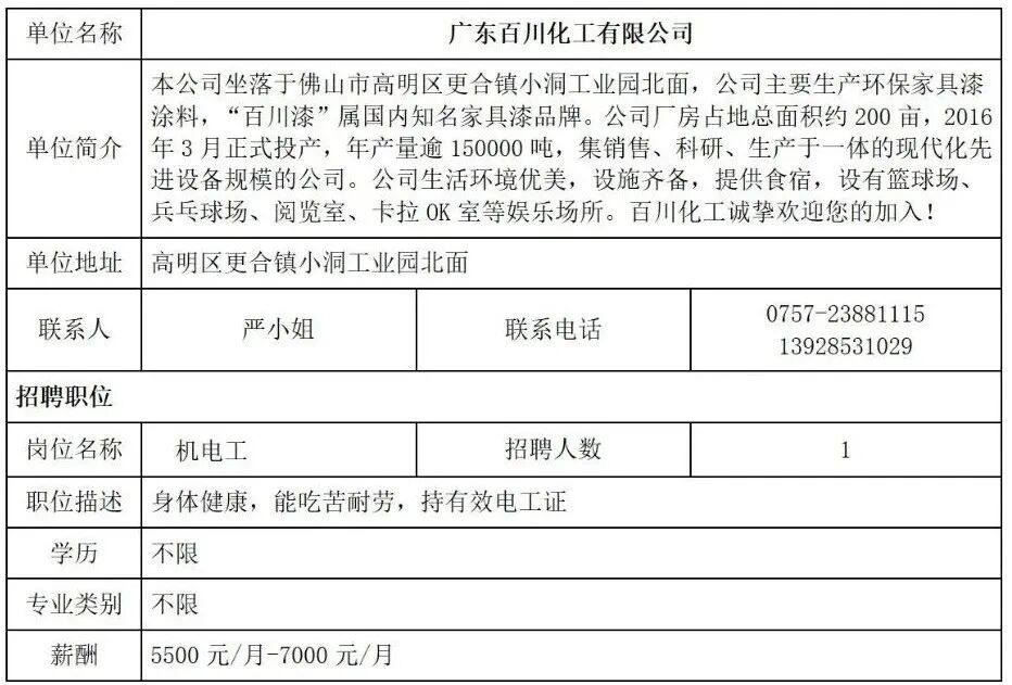 佛山市高明区捷丰裕金属制品有限公司招聘