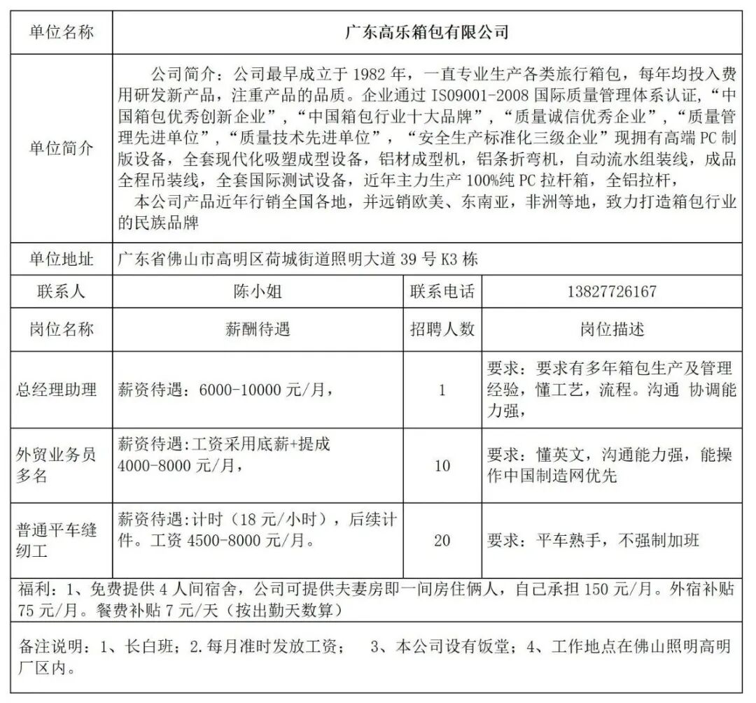 - 广东高乐箱包有限公司招聘