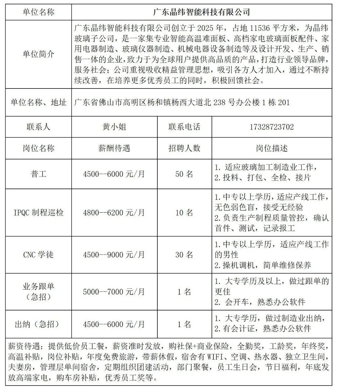 佛山市高明区捷丰裕金属制品有限公司招聘