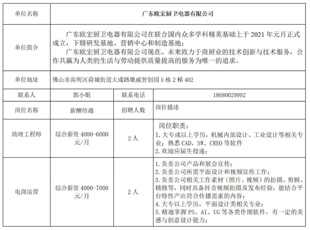 - 广东欧宏厨卫电器有限公司招聘