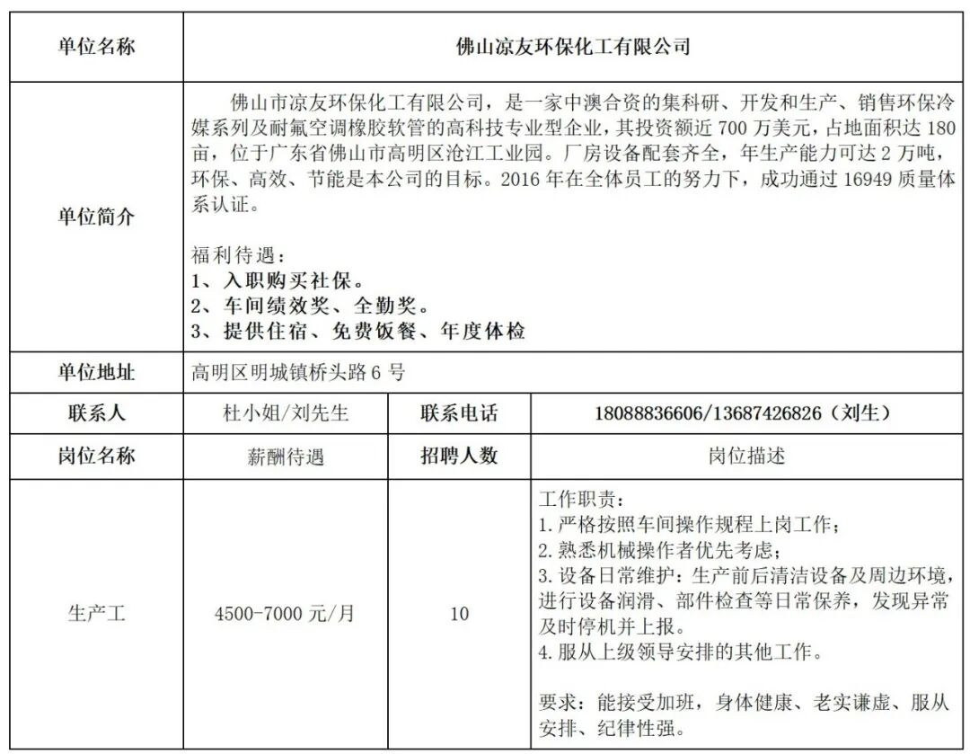 - 佛山凉友环保化工有限公司招聘