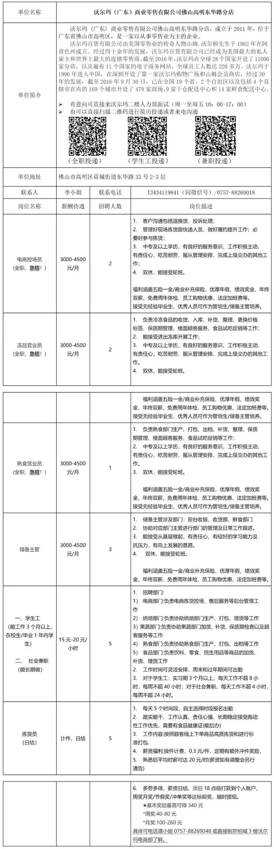 - 沃尔玛(广东)商业零售有限公司佛山高明东华路分店招聘