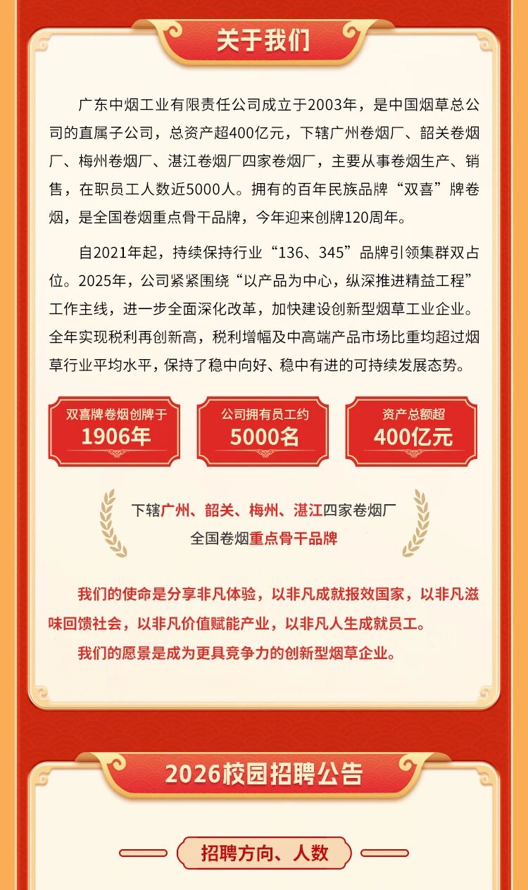 - 广东中烟工业有限责任公司2026校园招聘