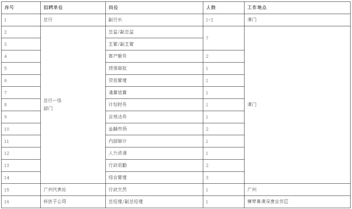其他岗位联系方式:人力资源及行政部(853)28322678
