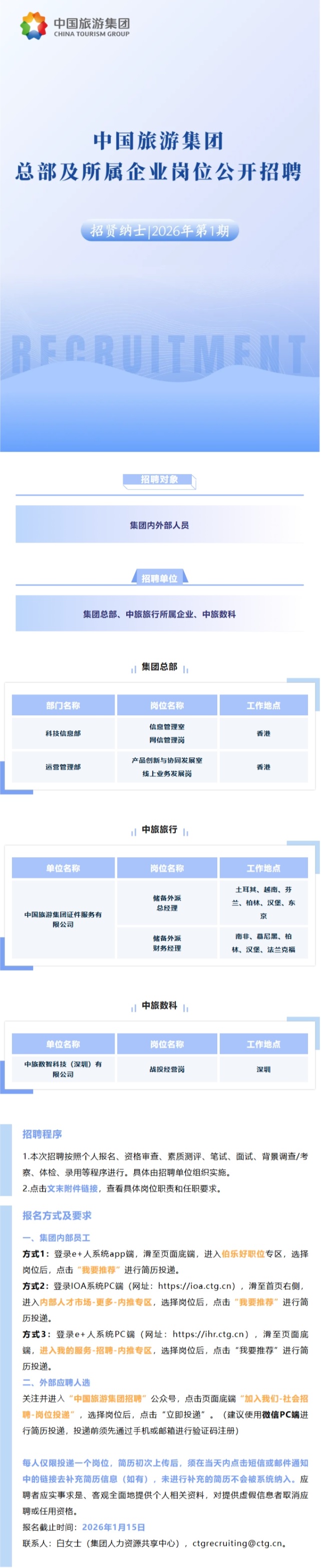 - 中国旅游集团总部及所属企业岗位公开招聘