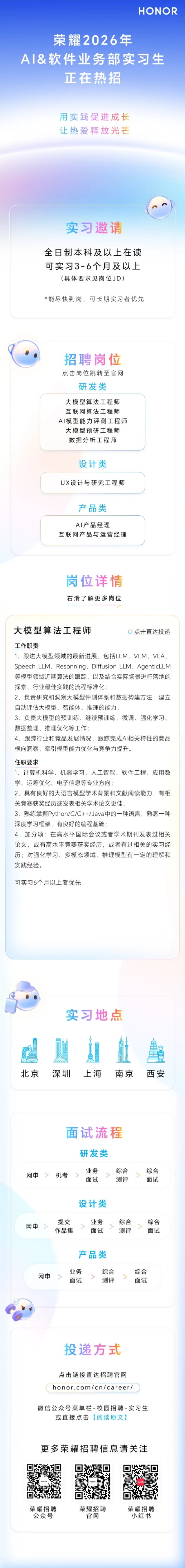 - 荣耀2026年AI&软件业务部实习生招聘