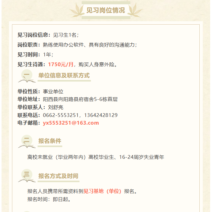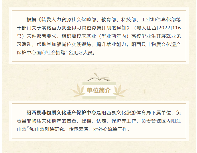 - 阳西县非物质文化遗产保护中心招聘就业见习人员