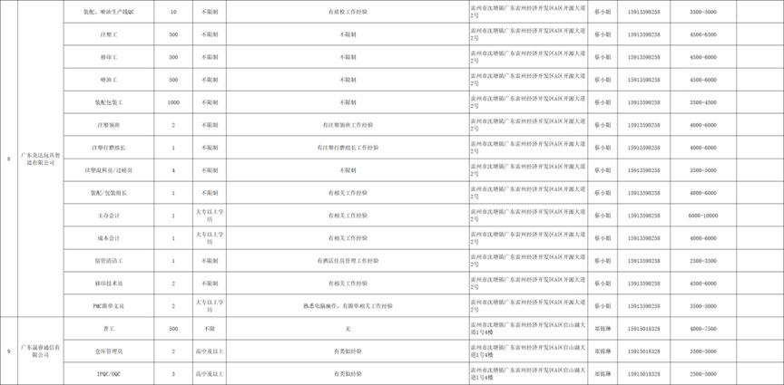 市场经理、营销经理、工程师、技术员、会计、清洁工、普工、门卫、安保、业务销售、操作员、电焊工、钳工、设计师、仓库管理员、拉布工、文员、仓务员、熟手车位、新手车位、收发员、装箱员、贴合工、注塑工、搬运工等